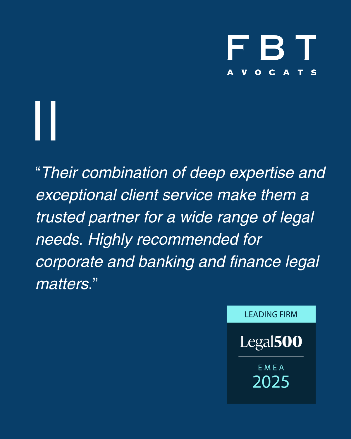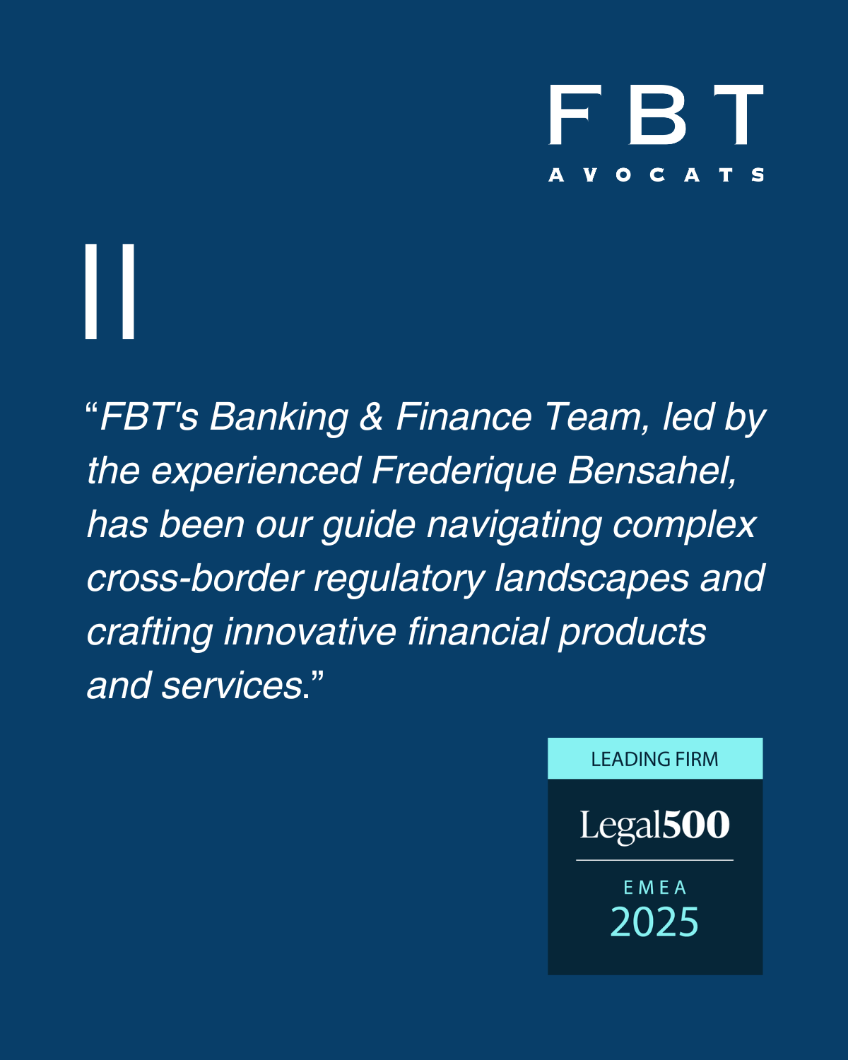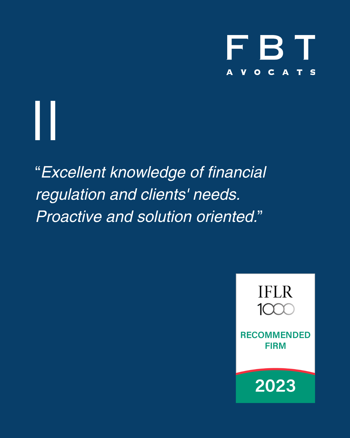 FBT Avocats SA is proud to announce its recognition as a Recommended Firm in this year’s IFLR1000 Western Europe rankings