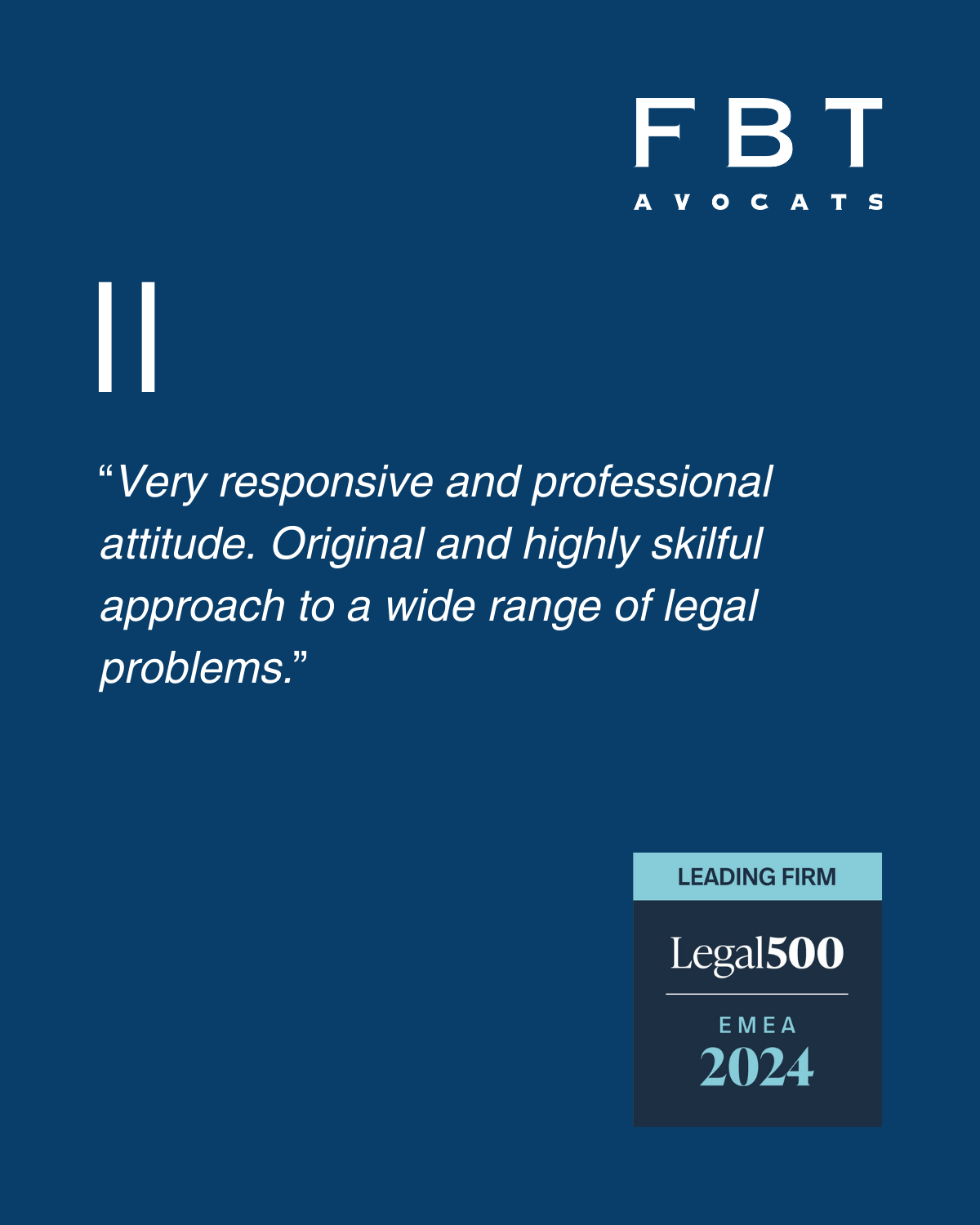 The FBT Avocats SA team has been distinguished by The Best Lawyers in Switzerland Peer Review (2026 Edition)