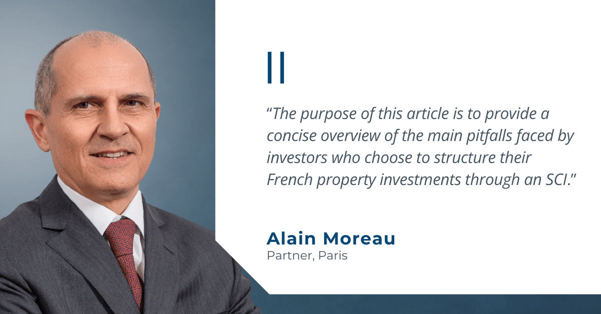 The société civile immobilière (SCI) is a French legal structure commonly used to hold and manage real estate assets. Its apparent flexibility — adaptable bylaws, facilitated transfer of shares, simplified formalities — makes it particularly attractive to foreign investors seeking to acquire property in France. Yet this apparent simplicity often conceals numerous legal, tax and estate‑planning complexities that non‑resident investors, and sometimes their advisers, tend to overlook. The purpose of this article is to provide a concise overview of the main pitfalls faced by investors who choose to structure their French property investments through an SCI.