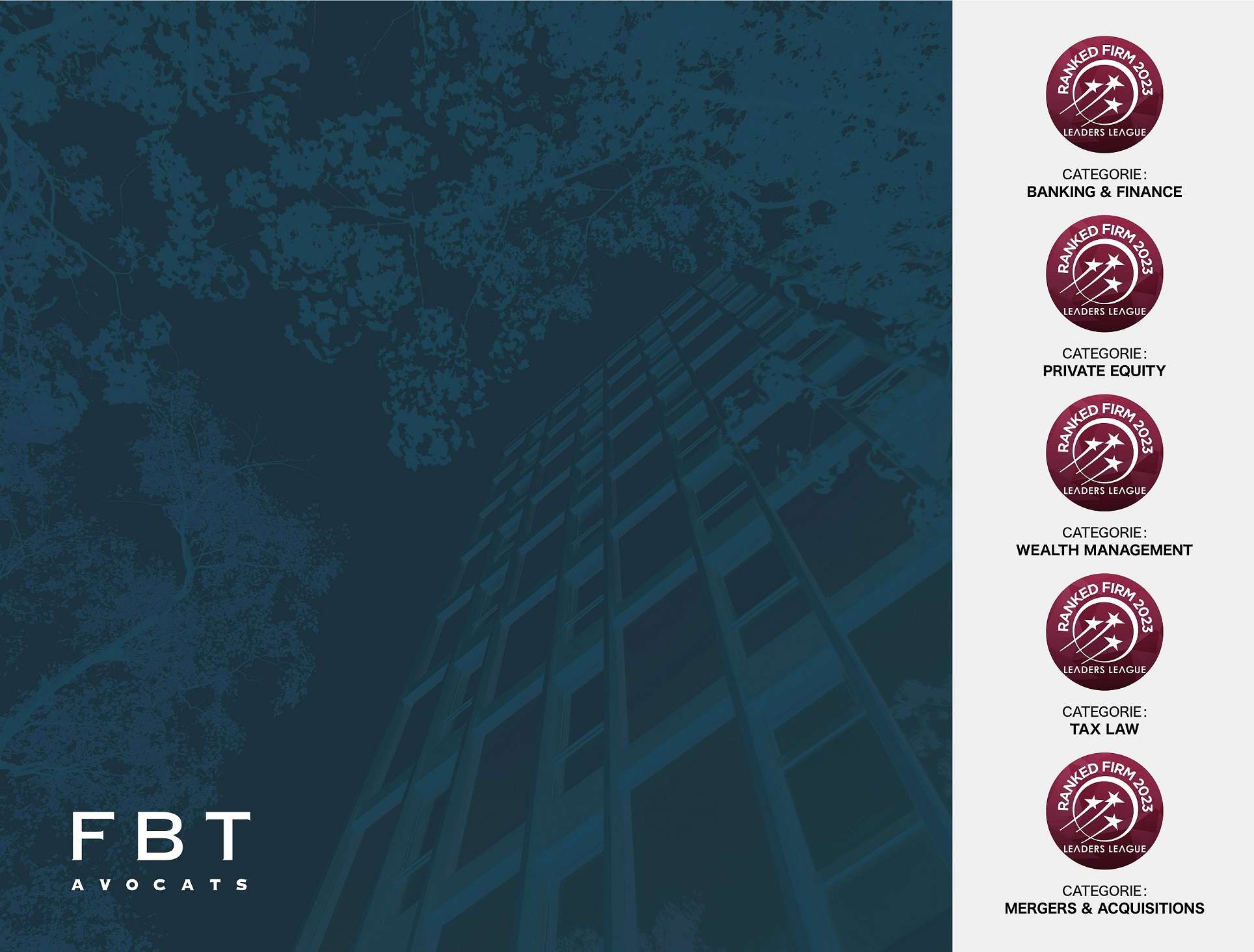 This year again, FBT Attorneys-at-Law has been distinguished among the best Swiss law firms for its expertise in the following categories: “Banking & Finance”, “Private Equity”, “Wealth Management”, “Tax Law” and “Mergers & Acquisitions”.