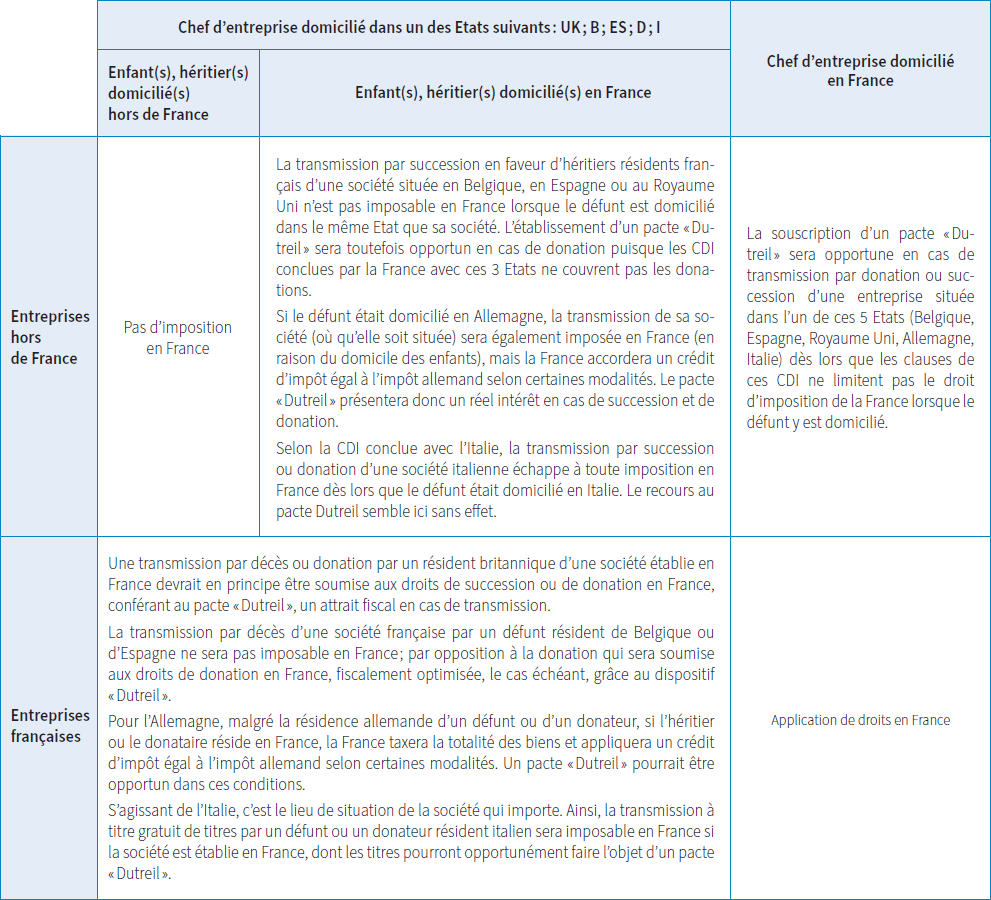 Bien évidemment, il sera nécessaire de vérifier préalablement si une donation bénéficiant du dispositif « Dutreil » est opportune au regard du droit dont relèvent localement le donateur et le(s) donataire(s).