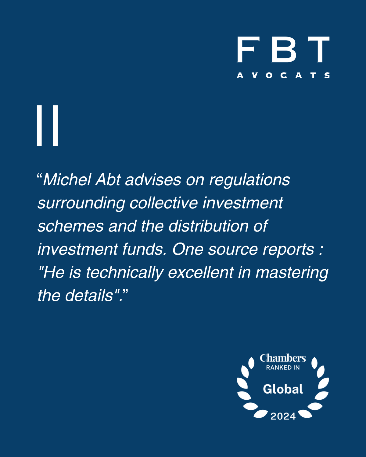 En outre, Michel Abt conseille des héritiers dans le cadre de successions internationales multi juridictionnelles complexes, tant sur le plan juridique que fiscal. Ses conseils portent aussi sur les patrimoines artistiques, leur mode de détention, leur transmission et leur vente. Enfin, Michel Abt est expert de la réglementation des marchés financiers, en particulier des fonds de placement, des fonds immobiliers et plus particulièrement de fiscalité des placements collectifs de capitaux et des détenteurs de parts.