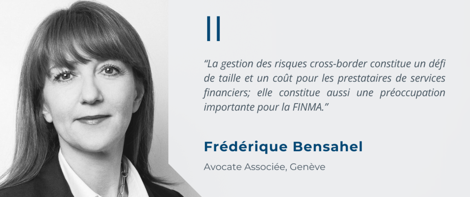 « La gestion des risques cross-border constitue un défi de taille et un coût pour les prestataires de services financiers; elle constitue aussi une préoccupation importante pour la FINMA. »