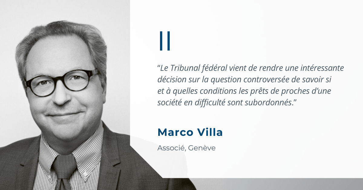 Dans cette affaire, des personnes proches d’une société, à savoir certains de ses actionnaires et de ses administrateurs, avaient octroyé des prêts à la société alors que celle-ci était en difficulté financière. Quelque temps après l’octroi de ces prêts, la société a fait faillite. Dans le cadre de la procédure de collocation des créances, les prêteurs en question ont demandé que leurs créances soient colloquées en 3e classe. La masse en faillite s’est pour sa part opposée à cette collocation et a exigé que lesdits prêts soient considérés comme postposés.